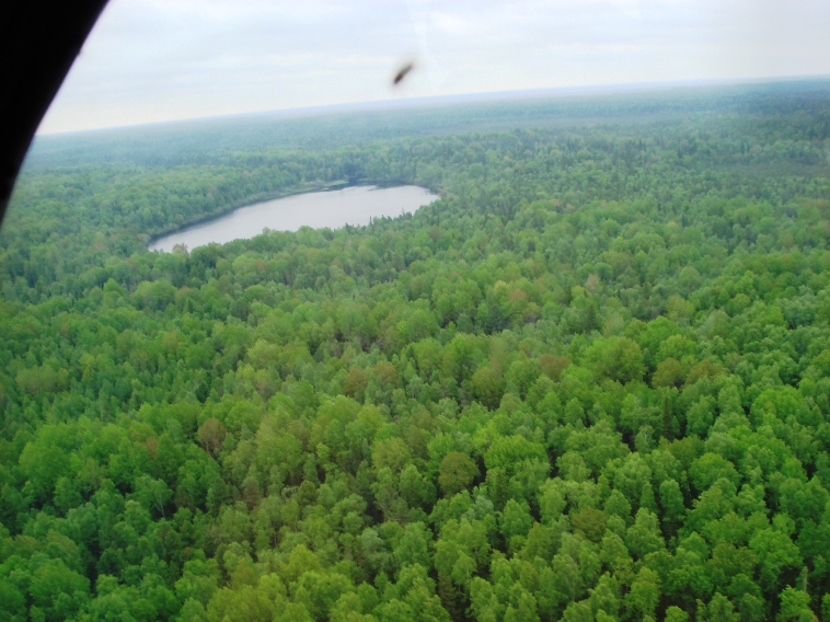 берегов у озера нет, у края леса вода, небольшой пяточек куда осторожно можно прилипнуть на ми-2.
