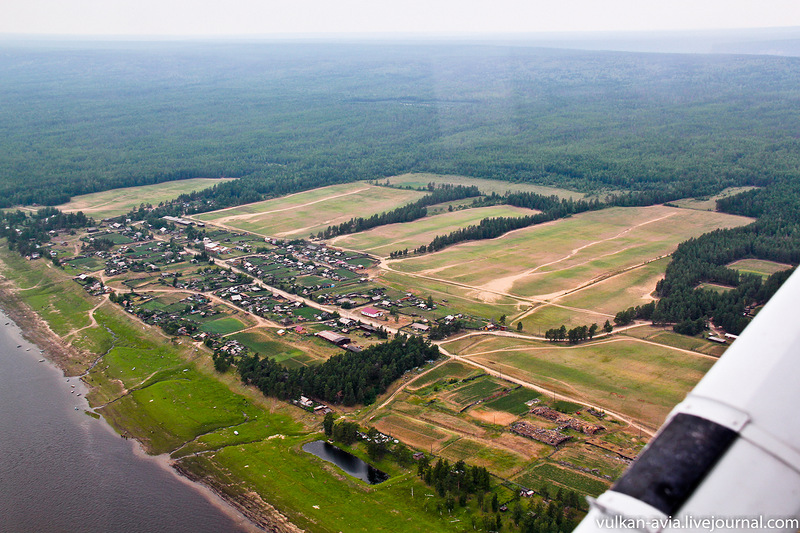 Пока мы наслаждались красотой Якутии, наша Цессна-150 достигла Олёкминска. Я ожидал увидеть большой аэропорт с хорошей ВПП, однако вот, что мы увидели на глиссаде: В голове крутятся вопросы - Это полоса? Почему она красная? И почему такая кривая??? Аэродром возведенный в 1942г, когда строили трассу Алсиб, оказался глиняным! Я впервые на таком аэродроме.