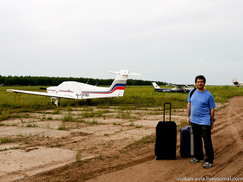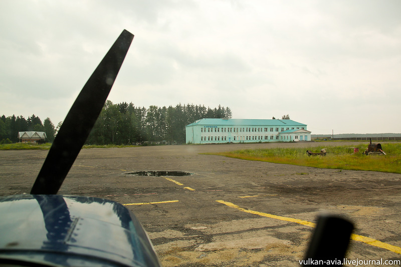 Нас встречает Андрей Заболотский - друг одного из членов нашей команды по восстановлению Ил-14 Олега Халявина. Государство ушло с аэродрома - великолепная полоса, здание аэровокзала сейчас сохраняются только благодаря энтузиастам, взявшим шефство над этим аэродромом. А Костя с Алексеем уже прилетели и дожидаются нас. Вот где чувствуется преимущество их самолёта! Вылетели позже, летели без посадок и прилетели раньше. Но видно, что ребята тоже устали. Они шли много выше чем мы, боролись с обледенением. Практически весь полёт был по приборам, причём им пришлось обходить шапки облаков с сильным вертикальным развитием.