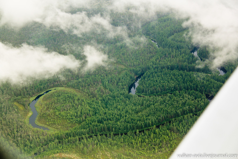 Летим под нижним краев облачности, которая местами всего метров на 50 метров выше ёлок. Ну ничего, прорвёмся - здесь, торчащих в небо вышек, как в подмосковье нету.