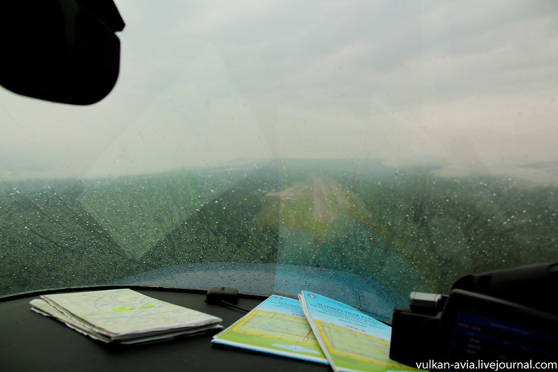 День 14 июля 2012 года мы практически целиком провели в небе. Чистое полётное время около 8 часов. Пройдено свыше 1000 километров. Денек выдался непростой - сначала летели в дожде, потом и вовсе начался слёпой полёт по приборам. Далее к СМУ (сложные метеусловия) прибавился выход из строя системы перекачки топлива, что поставило нас перед сложным выбором: лететь дальше по маршруту или уходить на запасной аэродром. Был выбран второй вариант, но он включал необходимость непростого общения с диспетчером ― если бы тот прознал, что у нас нарекания к матчасти, то мы получили бы кучу административных проблем. Полностью наш маршрут в этот день выглядит так: вылет из Олекминска, посадка в Ленске, затем незапланированная посадка в Киренске и финальный перегон до Железногорск-Илимского.