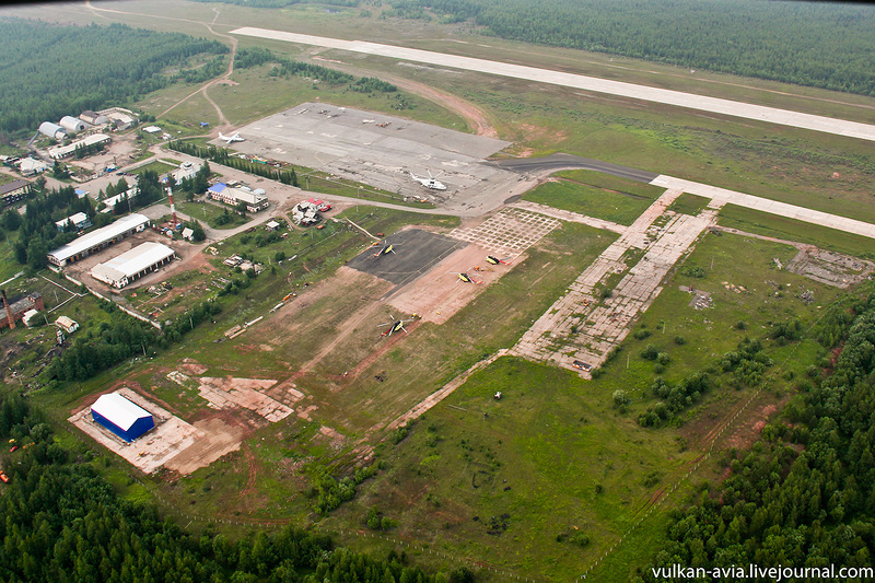 Пролетаем над Усть-Кутом. Сквозь дымку видим этот великолепный аэродром. На перроне UTair-вский вертолёт Ми-26, вокруг которого суетятся люди. Видно, что аэродром живой. Несколько свежепокрашенных Ми-8, Ан-26. Чувствуется, что скоро будет цивилизация.