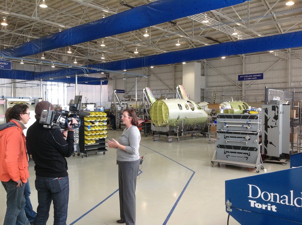 Надеюсь шпионские фотографии будут вам интересны. ( у нас бы наверное за фотографирование такого секретного обьекта засветили не только пленку, но и пару раз в глаз...). Потом было еще интерьвю с владельцем концерна Менсоном, ему пришлось наверное в сотый раз расскывать всякую фигню про производство и преимущества самолета. Я в конце концов не выдержал и спросил: