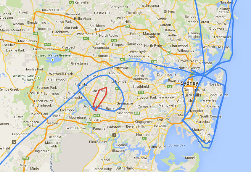 1. Bankstown Airport, YSBK (23:49Z) -> Dick's Toy Barn (01:08Z)