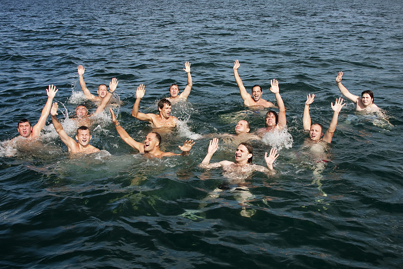 13.00 завтрак. 15.00 аренда судна не ясного назначения, выход в открытое море, дабы искупаться в чистой воде. Историческое фото на память. После купания обед, он же ужин в одном из самых посещаемых мест в городе. Там же состоялся брифинг. Почти вся команда собиралась в этот же вечер уехать на аэродром, что бы утром быть в полной готовности к вылету. Через две бутылки уговоров, планы меняются, решено отгулять ночное в этом же заведении, а уж утром, с первыми петухами выехать на аэродром. Отель с содроганием принял постояльцев еще на одну ночь.