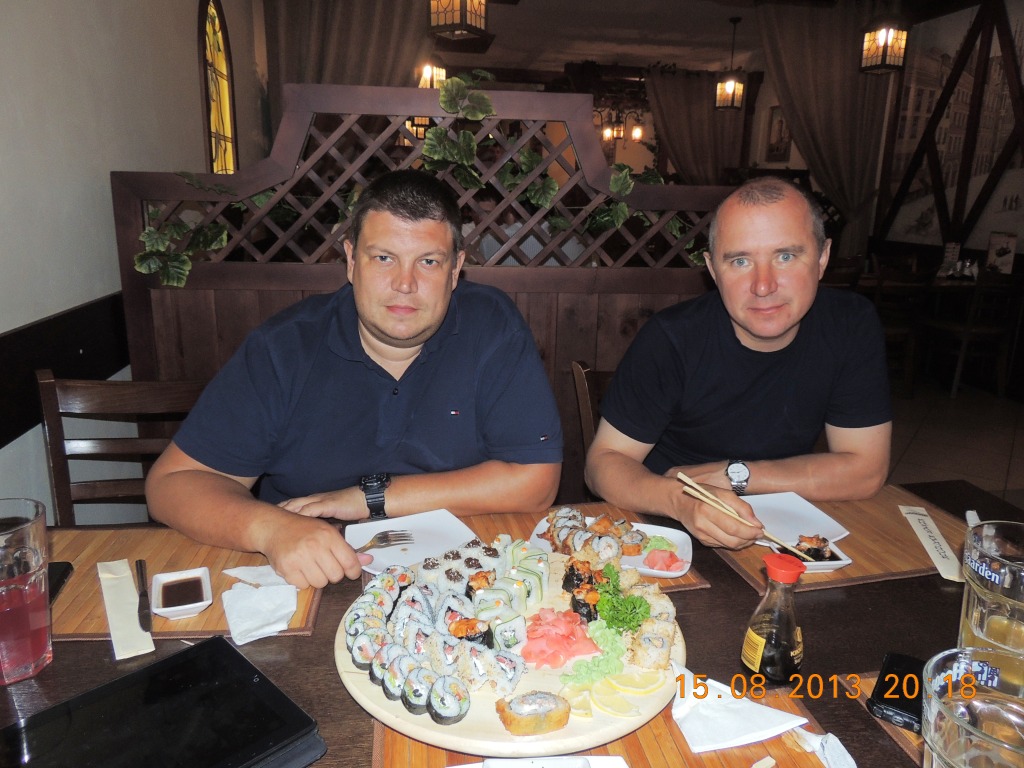 Встречал нас Владимир Городчиков, старый знакомый.Посадил нас в машину и повез ужинать.