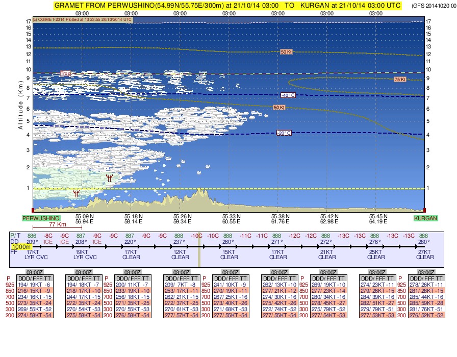 Хотите получить вертикальный разрез атмосферы на отрезке между двумя аэродромами - 12-часовой прогноз состояния атмосферы? Вам сюда: http://www.ogimet.com/gramet_aero.phtml.en - В строке "SITE or SITES (ICAO)" вписываете наименования аэродромов через нижнее подчеркивание (UUEE_UWGG_UWKD), и вперед. О том, как правильно расшифровать данные на схеме: тут: http://www.ogimet.com/guia_gramet.phtml.en. Результат предоставляется в таком виде: