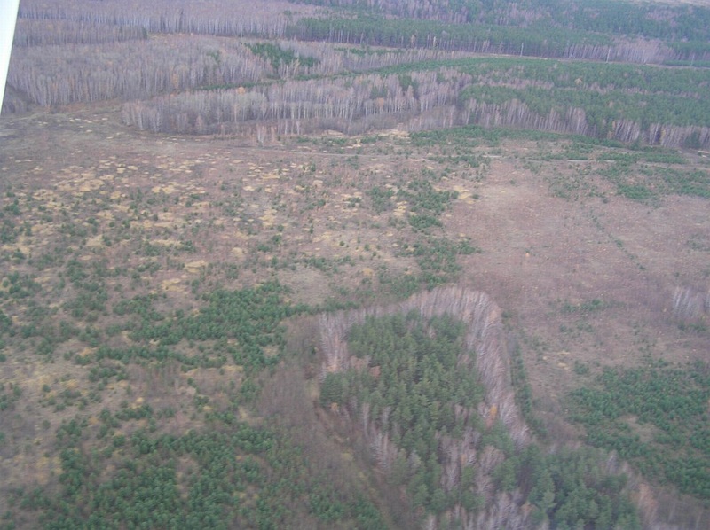3. Деревья. Осенний лиственный лес без листвы просматривается очень хорошо. Для наилучшего осмотра подходит прямой гон на высоте 200-300м с обзором вниз вперед под 45. Полевые участки, молодой лес с невысокими деревьями лучше осматривать с виража, постепенно смещаясь на новые неосмотренные участки. Хвойный лес - это засада. Просматривается плохо и долго. Подробный осмотр требует бОльших кренов, и небольшого смещения после каждого виража.