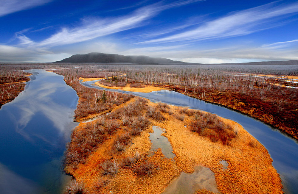 Тысячи больших и малых озер и речек. Возможен взлет с аэродрома, но по расстоянию до другого населенного пункта, возможность садиться на воду очень велика