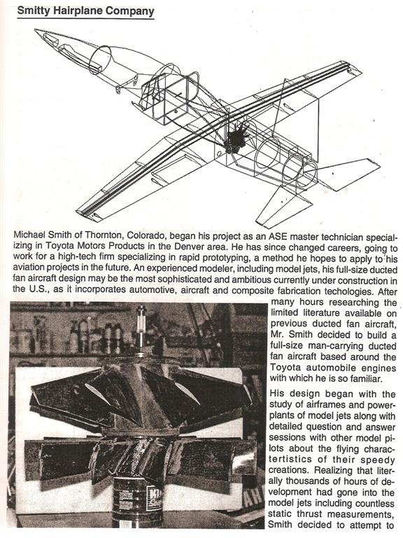 Я решил, что самолёт будет с ВМУ вентиляторного типа. В это время уже сушествовали самолёты с вентиляторами(Ducted Fan) такие как "Fan trainer", "Fan liner", "Optica" и некоторые умельцы пытались создать что-то своё: