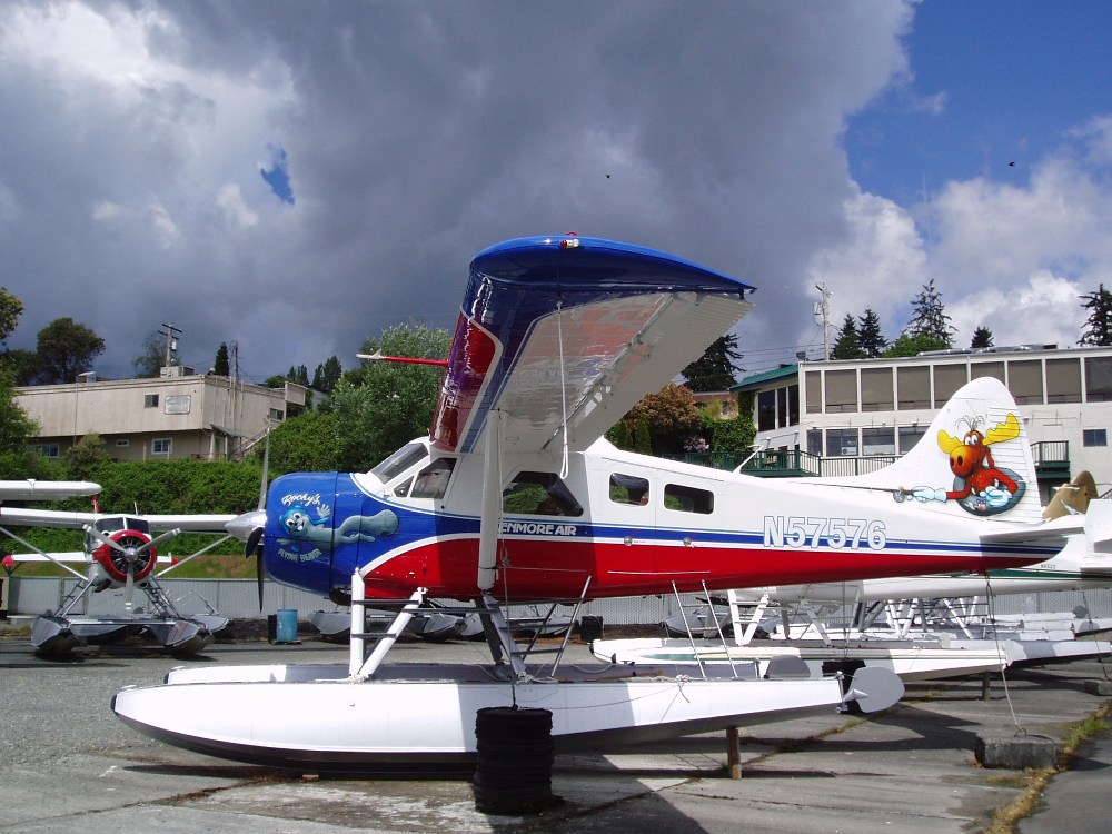 некоторые может ещё помнят что я получал свой ASES (одномоторный гидросамолёт) rating-а на Beaver-а ("beaver" = "бобр") - viewtopic.php?f=73&t=2894 - и с тех пор стал неровно дышать по поводу этого агрегата ... и после нескольких месяцев неполётов на Beaver-е начинается "ломка" ... и в этот раз я решил съездить в Мекку "бобр"оводства, в компанию широко известную в узких кругах - Kenmore Air - про которую иногда говорят что Beaver сделал её знаменитой, а иногда то что она сделала Beaver знаменитым, ... в общем неважно кто кого, важно то что с 1966 Kenmore Air и Beaver это почти как Ленин и Партия ... и это очевидно начиная от знака - подъезжая к базе на озере Washington у вас не будет сомнений в том куда прибыли ... :wink:
