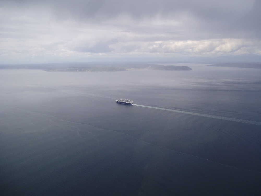 пару картинок из полёта ... типичный пейзажик (вообще вокруг Seattle много холмов, воды, и зелени) ...