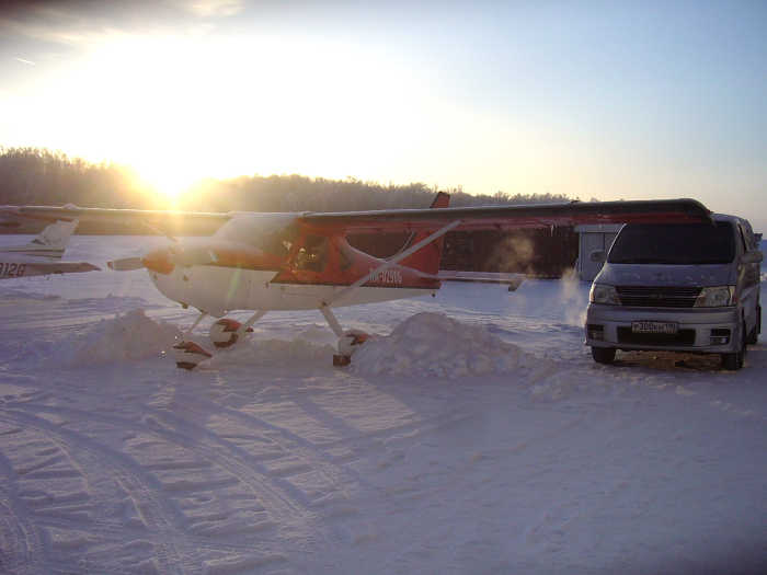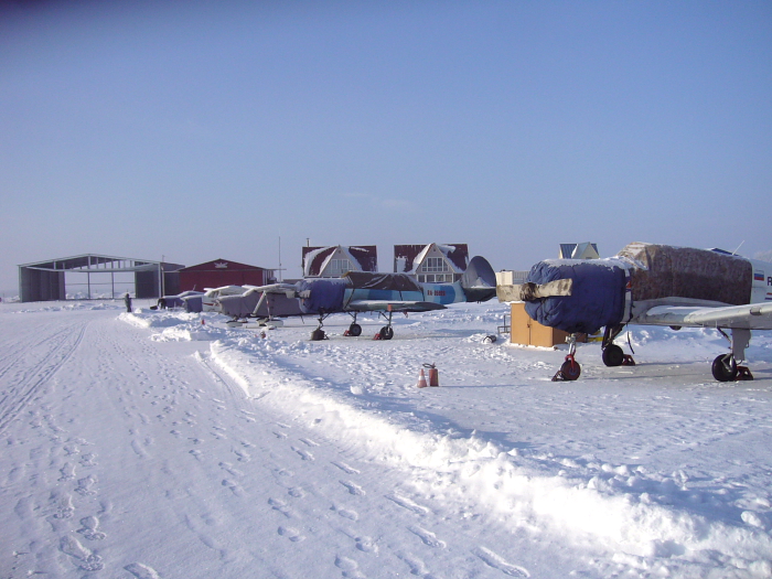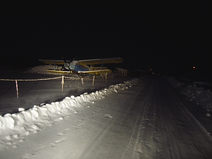 Екатерина встретила меня и несмотря на мороз :!: устроила настоящую экскурсию по аэродрому. Огромная ей благодарность! Мы прошли по рулежкам - под яркой луной была отлично видна бетонная и грунтовая ВПП. Посмотрели на большие и малые самолеты, Катерина рассказала и про них и про основные организации на аэродроме. Видно что здесь работают настоящие энтузиасты!