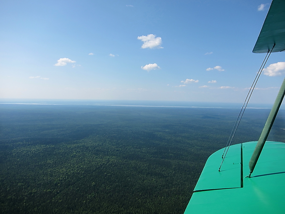 Летим на Енисейск. Расстояние в 280 км прошло незаметно, солнце поднималось и пригревало. Наша путевая скорость составляет около 120 км, что при хорошей погоде доставляет массу удовольствия от полета.