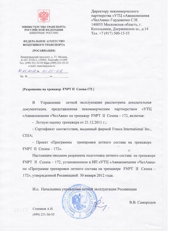 30 января 2012 года получили сертификат соответствия на тренажер Cessna - 172 и разрешена подготовка летного состава в НП УТЦ "Авиакомпания "ЧелАвиа" .
