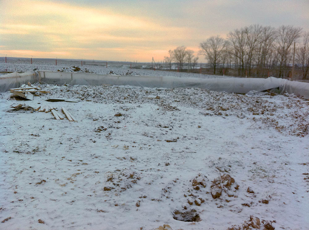 Долго ли, коротко ли, а стройка идет своим чередом. Вот уже фундамент почти готов, можно снимать опалубку. Начинается подготовка подушки под стяжку внутри ангара - выравнивается земля, завозится песок, прикатывается. Для въезда техники внутрь будущего ангара, в фундаменте, со стороны фасада, оставлен "прогрыз". То есть, периметр не замкнут. Прогрыз будет ликвидирован чуть позже, когда внутри ангара будет идеально ровная площадка, отсыпанная песком и щебнем.