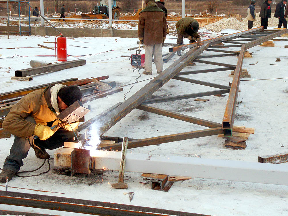Тем временем, закуплен металл. Начинается сварка конструкций каркаса ангара.