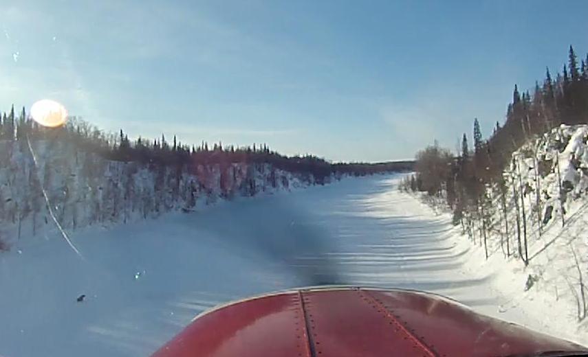 на обратном пути практиковали посадки на реку ... сначала провели разведку снежного покрова ... а потом садились в свои следы ...