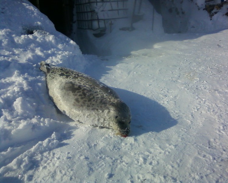Вот забирайте!!!Представители-ау! Эта штука повадилась мою нельму жрать из моих-же снастей,пришлось возле лунок посидеть и принять меры!(дышать "кит" любит и периодически из лунок выныривает,заодно справляется ушел я или нет).