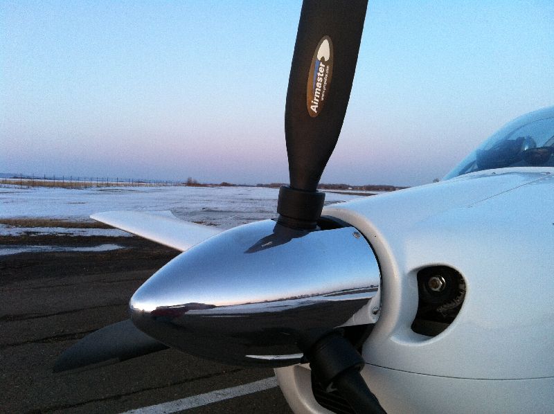 Облетали Р-2002 с трехлопастным AIRMASTER. Появилась возможность сравнить характеристики одного и того-же самолета с тремя разными винтами. Изначально на самолете был установлен итальянский деревяный винт GT-ТONINI фиксированного шага-середнячок выдавал вполне приемлемые взлетные и крейсерские характеристики, но ведь всегда хочется большего. В качестве альтернативы был выбран красавец АР-420 (AIRMASTER) c "модными" и дорогими лопастями брэндовой SENSENICH. Диаметр решил выбрать максимально возможный. SIERRA сам по-себе красивый самолет, и AIRMASTER безусловно еще больше подчеркивает его аэродинамические "дельфиньи" формы. С этим винтом самолет перелетел из Москвы через Стерлитомак в родной Красноярск. В сравнении со стандартным с фиксированным шагом разбег самолета сократился, а скороподъемность стала на порядок выше. Мягкая работа во всем диапазоне оборотов, но... "крейсер" при 4900-5000 остался прежним-в среднем 100 узлов.