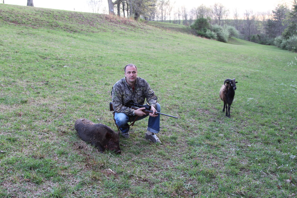 ) и пара баранов, все жрут из одного корыта, ну зоопарк ей богу!!! Выбрал самого маленького-вкусненького, начинаю его выцеливать, тут наш козебаран опять со своими игрищами! Достал, мешается... Предлагаю обойти их с другой стороны ... Ну не интересно так стрелять! Тут вмешивается егерь и предлагает еще поездить, поискать, сразу соглашаюсь , но надо отвязаться от нашего друга, ну достал ведь!!!! Принимаем решение- козебарана нейтрализовать!