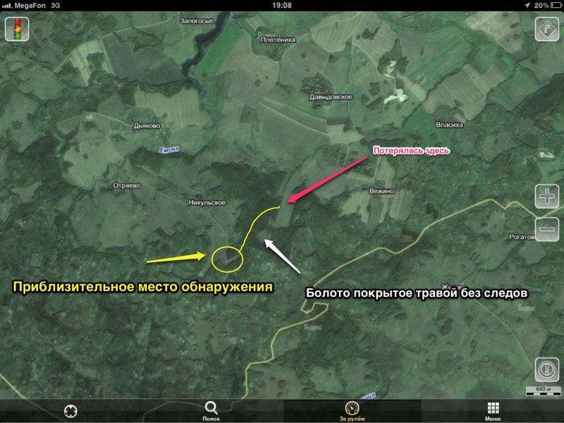 Попутно поговорил с мамой, узнал немного про девочку, в том числе умственное здоровье, общее состояние здоровья, была ли когда нибудь в лесу, была ли в этом лесу. В лесу, включая этот ребенок как оказалось не был не когда, из отклонений только одно, но очень неприятное, когда сильно плачет может начать задыхаться. По большому счету "ребенков" было два..., двадцати двухлетняя мама семилетней потеряшки больше чем на 15 сама не тянула... Единственное, что порадовало, это оранжевые резиновые сапоги на девочке. Попросил главных МЧСовцев из штаба отозвать силы с полей и направить в лес. МЧСовских было не много, похоже только один дежурный экипаж, курсанты какие то служивые, полйцейские разных сортов в небольшом количестве, местные и Ивановские и костромские добровольцы ЛА. Взлетели и работали час, постоянно возвращаясь к тем местам куда по моим расчетам могла выйти девочка. Попутно поняв картину, увидев просеки и болото, я решил, что девочка скорее всего выбрала единственный самый длинный путь по практически не просматриваемому и очень сложному по завалам для прочесывания участку леса, между полями и болотом и скорее всего надо там и искать, возвращались все время к месту указанному на карте желтым кружочком, где её в конце концов и нашли.