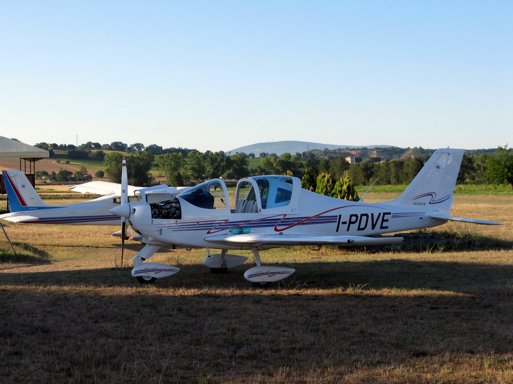 Запускаемся и греемся. Быстро забиваю в гармин ближайшие точки маршрута. Поехали….мы рулим первыми, на радиочастоте местного аэродромчика идет какой-то радиообмен на английском и итальянском. На полосе сидит самолетик, не взлетает. Мы стоим на предварительном, проверяемся, самолетик, убедившись, что мы ему на полосу не вылезем, начинает разбег, отрывается и уходит в жаркое небо. Выруливаем и трясемся по неровностям, чтобы занять исполнительный, надо порулить по всей полосе. За нами рулят RA и Foxtrot, занимаем исполнительный, соответственно при развороте Foxtrot оказывается лидером, RA за ним, ну и мы сзади. Еще одна проверка, подтверждаем готовность и Foxtrot начинает разбег. Взлетает тяжеловато – жарко, полные баки, начинает неспешный набор высоты. RA начинает разбег, отрывается, наступает наша очередь, газ вперед, побежали. Скорость растет медленно, самолет начинает уходить с полосы – ветер чуть сбоку, подпрыгивает, еще раз тыкается колесами об землю и переходит в набор. Наше путешествие началось…..