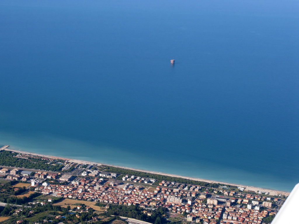 Впрочем, Пескара не настаивает, ему тоже скучно: никого нет в воздухе, так хоть поговорить. Идем вдоль побережья, слева виден аэропорт Пескары, там стоит единственный борт, что-то типа АТРа или Дэша с двумя вентиляторами – с такой высоты не разобрать. Вдоль побережья торчит полным полно коттеджей (отелей мало) и видны пляжи, на которых мало, но народ имеется, что вызывает большое желание искупаться. Мы так в Неаполе к морю и не сгоняли…. А тут все лето летаешь на коммерческой трубе, возишь отдыхающих к месту отдыха, а сам сосешь лапу. Обидно, да! Определенно несправедливо!