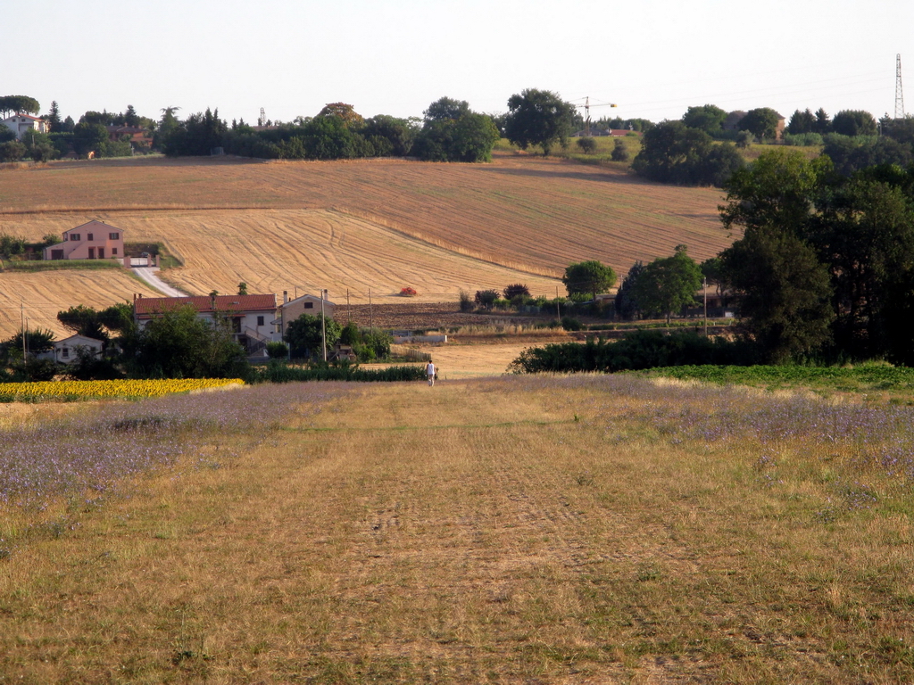 Анкона нас не слышит, даже позывной не разбирает, дает качество связи 5/2 и 5/1. Мы сзади выше, поэтому я пытаюсь запросить, мне отвечают, хотя качество связи все равно плохое – он за горой сидит, волна не проходит и я ему говорю, что мы уже садимся и не надо о нас беспокоится. Говорю до свидания, но не уверен, что он услышал. Переходим на частоту Recanati, на ней никого (кроме нас) не слышно. Подходят уже координаты точки, а ее нет – полосы не видно. Возникает легкая паника, думаем, что ошиблись координатами, или на сайте наврали – тогда ошибка у всех. Проходим указанные координаты и встаем в круг, спереди Foxtrot, сзади RA и мы на Echo, вообще зрелище очень красивое – на фоне зеленых холмов идут два самолета, как белые бабочки порхают. Я такое видел только давно давно, когда летал в Америке, в районе Сан-Франциско постоянно летают парапланы и дельтапланы. Но полосу пока не видим, стоим в правом кругу, делаем разворот раз, второй и на втором кругу Foxtrot говорит, что полосу увидел. Он ниже нас, мы еще пока не видим ее. Делаем за ним проход и видим полоску, осматриваем подходы, проходим и левым кругом начинаем строить заход.