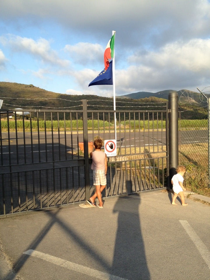 В какой-то момент дисп Гросетто дал команду сообщить ему, когда мы отклонимся от берега в сторону острова и пойдем над открытым морем. Ну мы и пошли над ним - всего-то 20 км. Дисп спросил через несколько минут, видим ли мы остров Эльба, и, получив подтверждение, повелел нам работать с вышкой аэропорта Marina di Campo Эльбы. Там нас, как уже стало привычно, радостно встретили, отвезли к выходу, заставили заполнить какую-то новую декларацию и отпустили. Прямо на выходе из аэропорта находится офис трансферной компании, которая быстро погрузила нас в микроавтобус и повезла в затребованный нами ресторан на хорошем пляже.