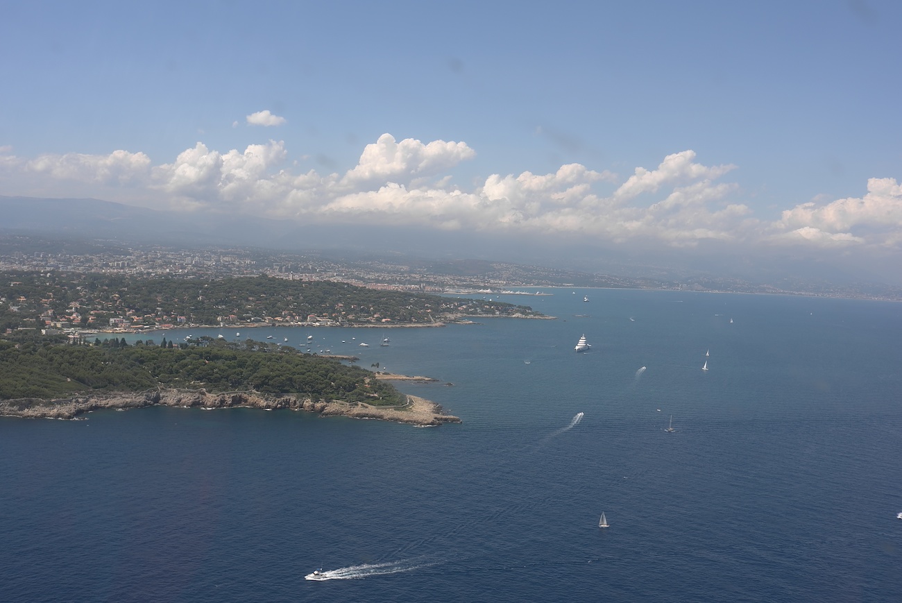 Затем начались курьезы. Как выяснилось Миша подал план пролета ЮБФ (южного берега Франции) через горы севернее Ницы. Выяснилось естественно при подлете. На мой вопрос ПОЧЕМУ не над морем? Миша лаконично ответил - Я там был 4 раза и там нечего делать. Но тут вмешался случай. Пролеты в той зоне проходят по коридорам. Диспетчер нам дал точку, которую мы должны пройти. Дал видимо севернее Ницы, но мы ошиблись и пошли южнее. Увидив нас на радаре диспетчер удивившись спросил - так вы по морю пойдете? Ну тут нам уже деться было некуда и Миша подтвердил, что мы пойдем по столь не любимому им маршруту...