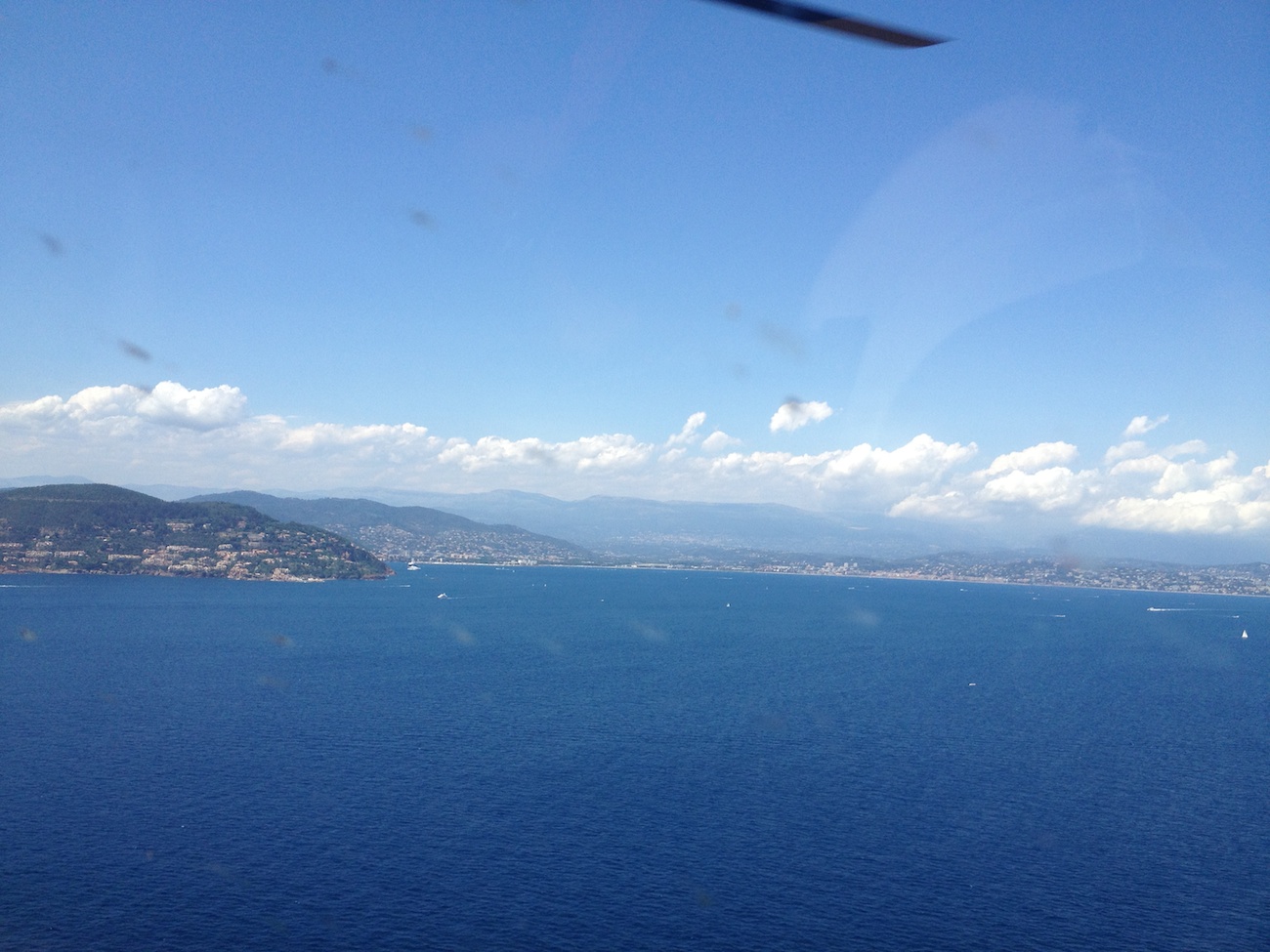 Затем начались курьезы. Как выяснилось Миша подал план пролета ЮБФ (южного берега Франции) через горы севернее Ницы. Выяснилось естественно при подлете. На мой вопрос ПОЧЕМУ не над морем? Миша лаконично ответил - Я там был 4 раза и там нечего делать. Но тут вмешался случай. Пролеты в той зоне проходят по коридорам. Диспетчер нам дал точку, которую мы должны пройти. Дал видимо севернее Ницы, но мы ошиблись и пошли южнее. Увидив нас на радаре диспетчер удивившись спросил - так вы по морю пойдете? Ну тут нам уже деться было некуда и Миша подтвердил, что мы пойдем по столь не любимому им маршруту...