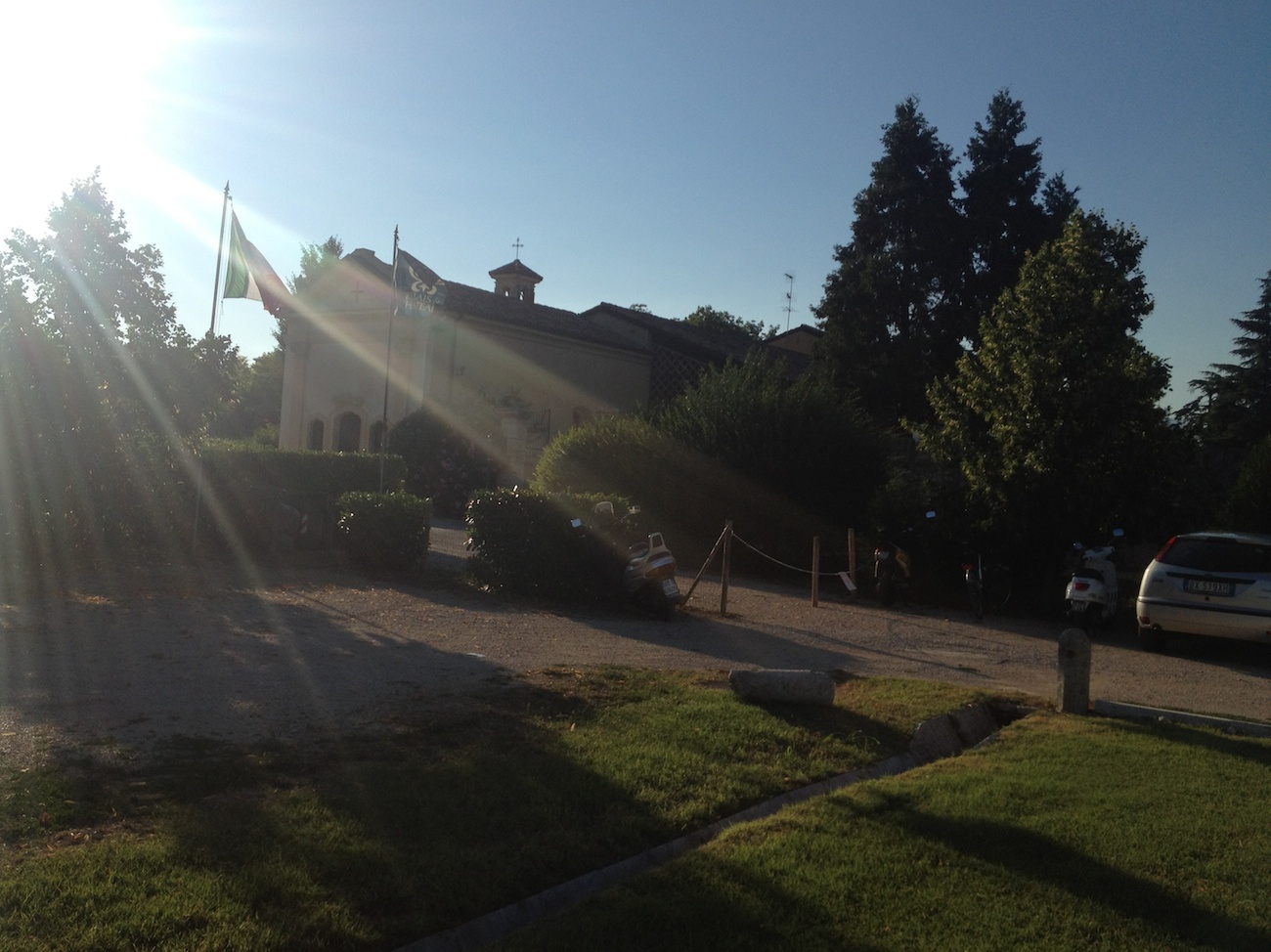 Утром 8 июля мы не долго предавались неге в гостеприимном отеле. Взлетели, прошли над центром Вероны (что еще надо, чтобы потом рассказывать внукам:"Да бывал я в той Вероне... Ну, Арена там самая древняя - видал я ту Арену..."?) и взяли курс на Восток. На Востоке была Венеция и аэродром Лидо, многократно здесь описанный известным путешественником VK68. В Портороже нас ждал на обед мой старинный товарищ Вова Зинченко АКА vladimirupg, но я увидел странный блеск в глазах 12345. Пролететь над городом нам не разрешили, поэтому он никогда бы не смог небрежно сказать внукам, сидя у камина:"Да бывал я в той Венеции... Ну, Сан-Марко - видал я тот Сан-Марко..."