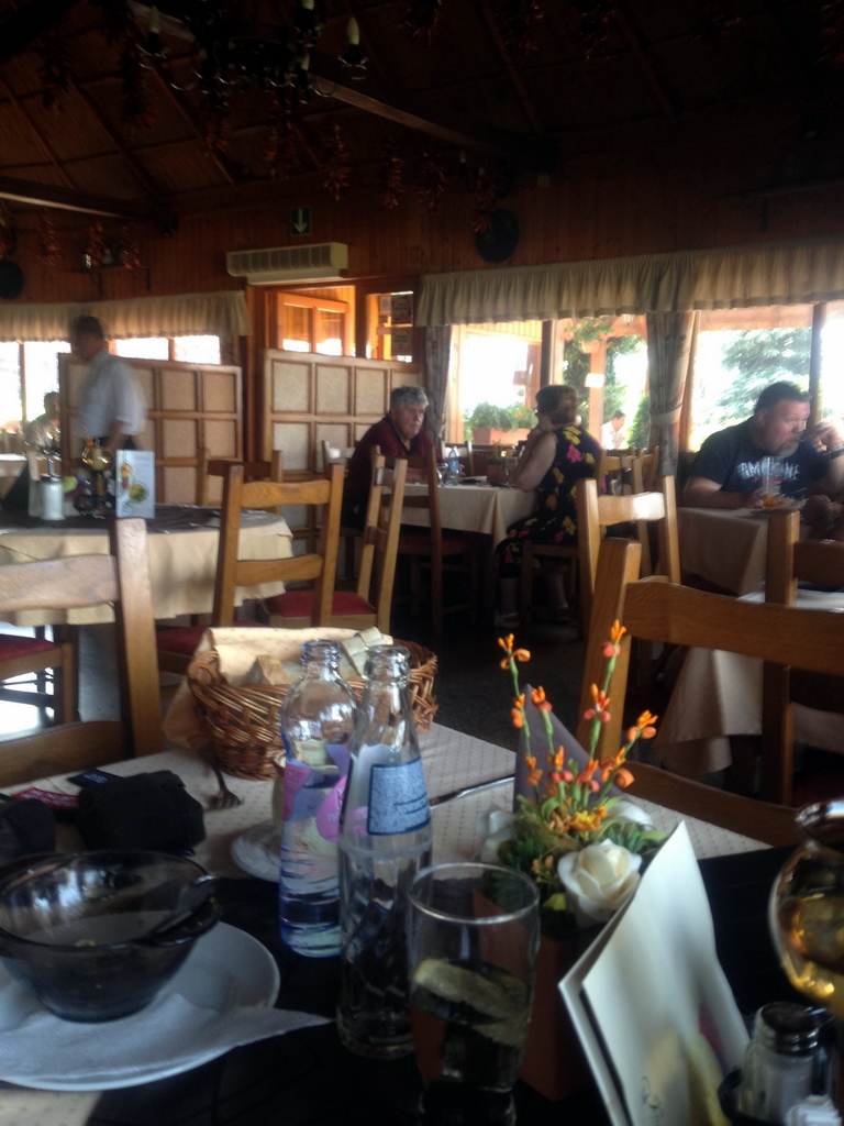 Еще в брифинг-руме стоит древний компьютер с выходом в интернет, но мы им не стали пользоваться - погоду я с утра смотрел внимательно, а так есть IPADы и есть выход в интернет с них. А теперь надо подкрепиться перед следующим перелетом - впереди нас ждет встреча с фронтом, где явно будет менее весело, чем на том участке, где мы уже пролетели. Ребята на аэродроме уже знают Серегу и прибалтийского коллегу, и быстро организовывают транспорт. Место, где кормиться, тоже уже известно. Вот такой прикольный местный ресторанчик, в который народ едет явно издалека. Поскольку поблизости населенных пунктов особо и нет. По дороге чуть чуть разводим нашего прибалтийского коллегу, говоря, что заходили по ILS. Он в недоумении - в порту нет ILSа, так про какие "стрелкам" мы говорим, что по ним заходили. Через некоторое время до него доходит :)