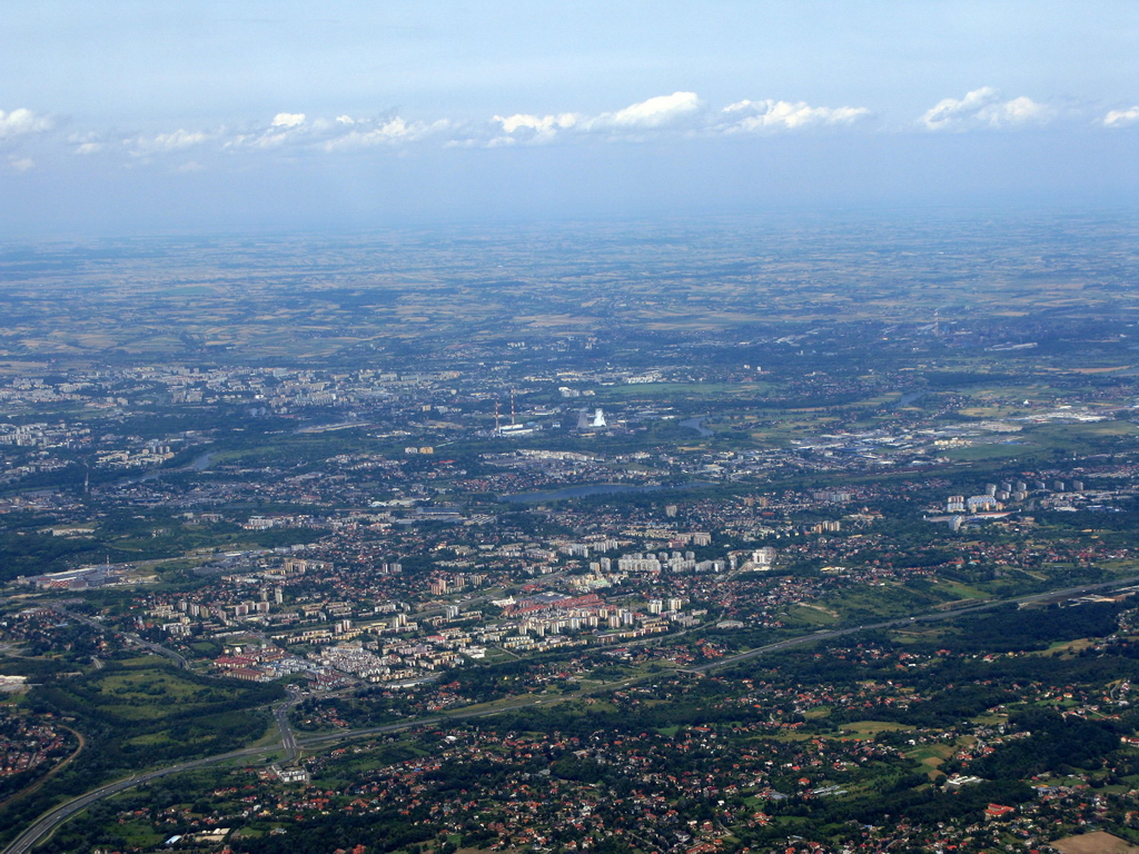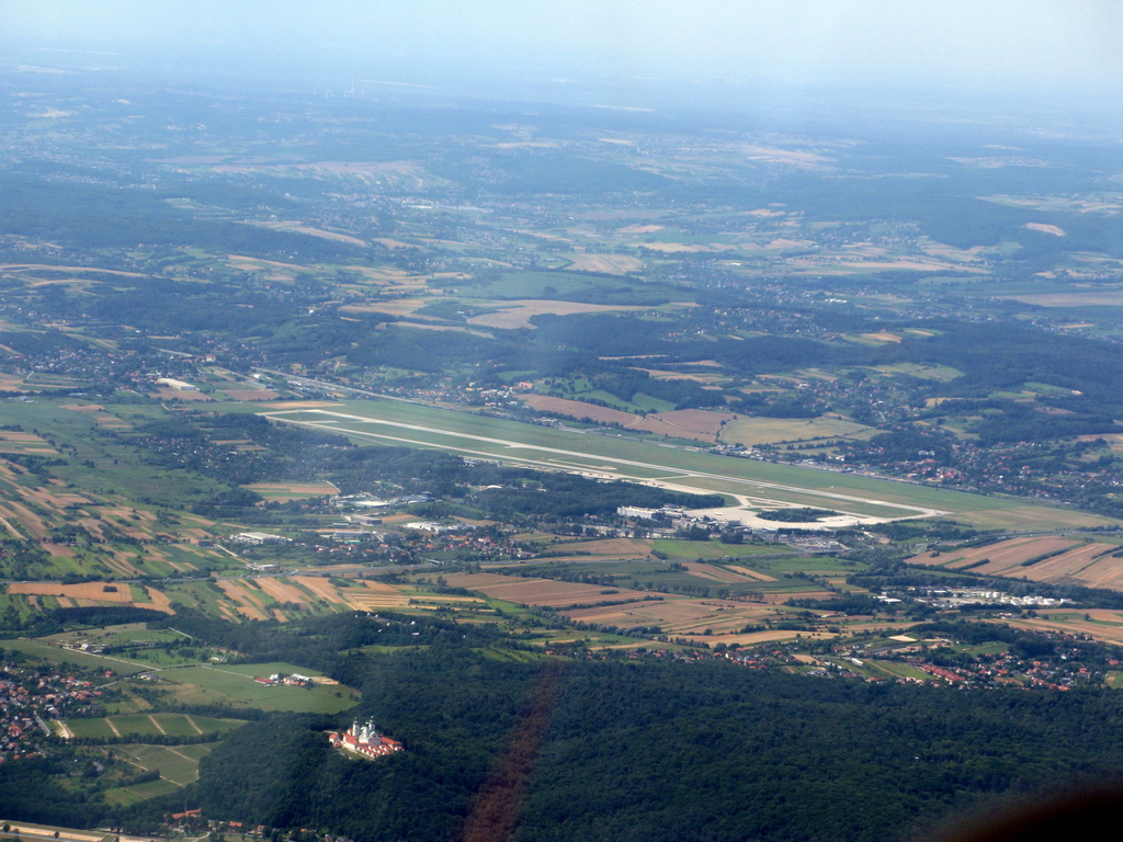 Минуты через 3 поулеглось. Подход запрашивает наши намерения (лететь блин!) и точно ли что мы будем выдерживать высоту 5500. Ага...будем. А группа будет...А куда она из колеи денется. Подход больше ничего не спрашивает, чуть позже становится понятно, почему задавались такие вопросы: дело в том, что мы пересекаем глиссаду аккурат под прямым углом Кракова, а там летает всего очень много. Мы проходим выше, а под нами заходят борты. Симпатичное зрелище, жаль заснять не получилось. Угол съемки не тот