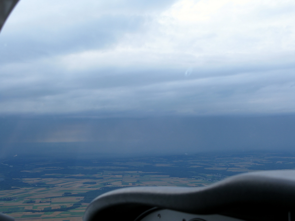 Видимость все ухудшается, начинает идти дождь. Поскольку капли на фонаре делают сьемку невозможной, больше фоток с этого полета не будет.