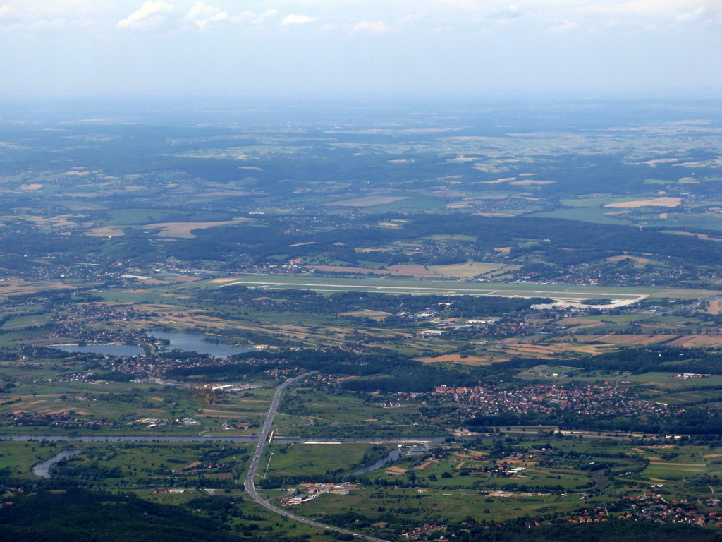 Минуты через 3 поулеглось. Подход запрашивает наши намерения (лететь блин!) и точно ли что мы будем выдерживать высоту 5500. Ага...будем. А группа будет...А куда она из колеи денется. Подход больше ничего не спрашивает, чуть позже становится понятно, почему задавались такие вопросы: дело в том, что мы пересекаем глиссаду аккурат под прямым углом Кракова, а там летает всего очень много. Мы проходим выше, а под нами заходят борты. Симпатичное зрелище, жаль заснять не получилось. Угол съемки не тот