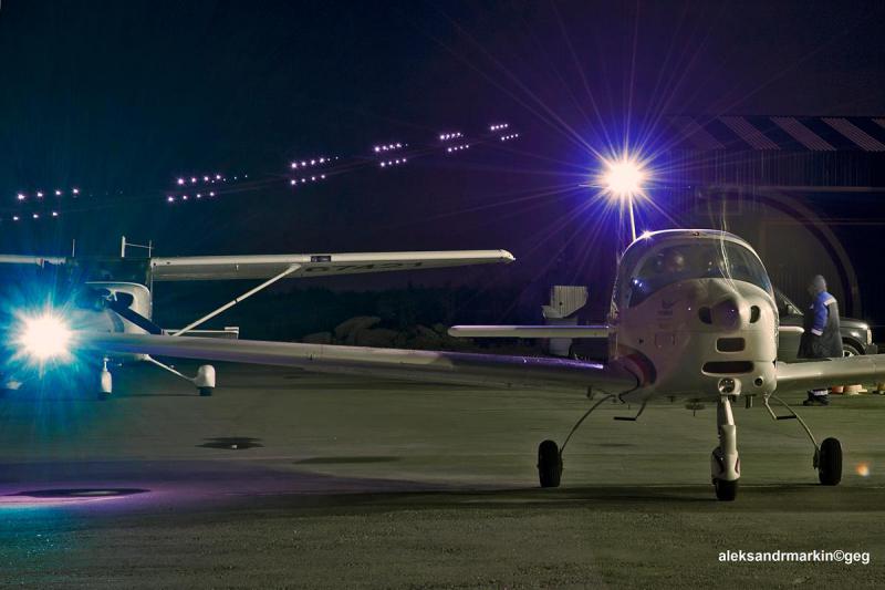 Сами же полеты мы выполняли не только по кругам, но и зонам, коротким маршрутам. Приятно порадовало и наличие на Слете так ожидаемой Цессны, которая была под большим вопросом вплоть до самого начала полетов. Тем приятней было ее появление под управлением Сергея Ивановича Ковалькова, вместе с которым на Цессне в эту ночь отлетало аж шесть наших участников. Приятным было то, что помимо парней всю прелесть полетов ночью оценили и две девушки - по моим наблюдениям после посадки обе были под сильным позитивным впечатлением!