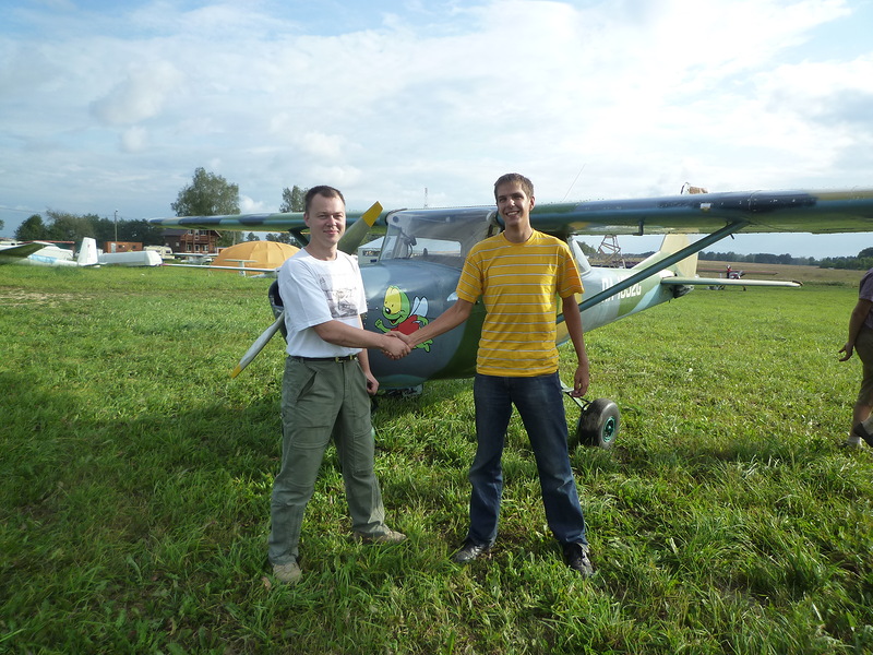 11 августа 2012 случилось радостное событие для меня - на Аэродром Шевлино (Пятница) вылетел самостоятельно курсант Юрий Бердников, с которым мы вместе учились. Я учился быть инструктором и осознавал, какой это нелегкий труд, а он получал навыки пилотирования. Не знаю, как ему с инструктором, но мне с курсантом реально повезло. Я без колебаний, после проверочного, вылез из кабины и остался на перроне.