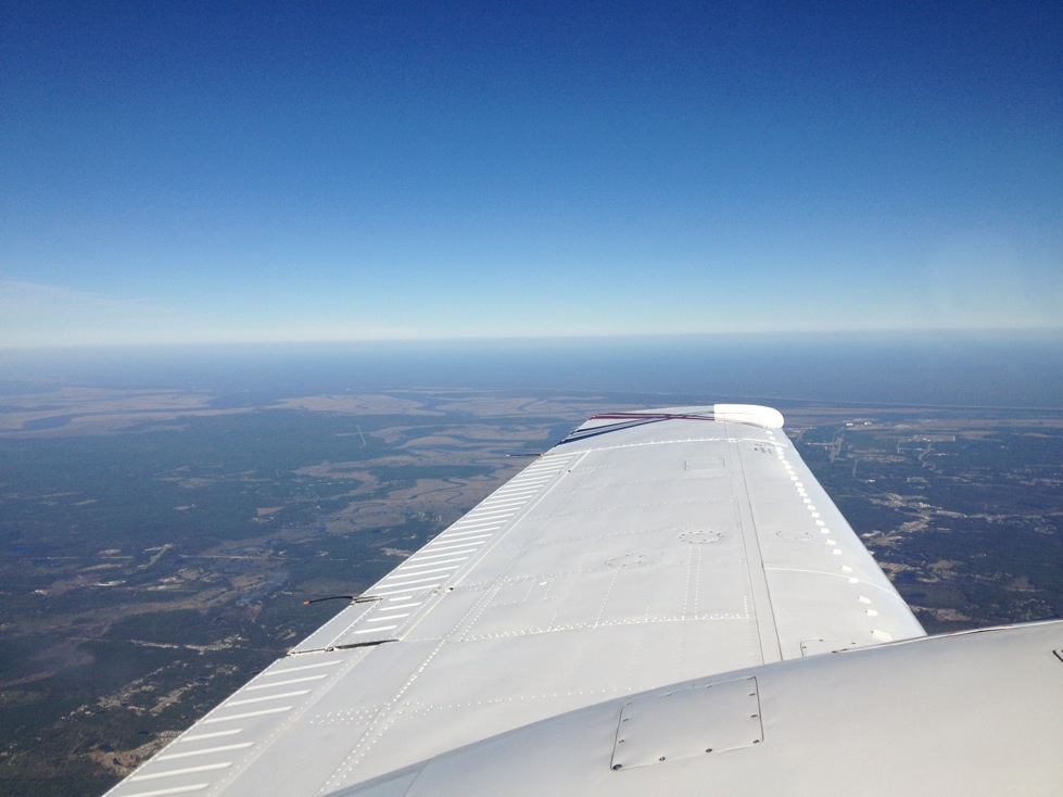 Поднялись на 8 000 футов, воздушная скорость составляла 160 узлов, скорость по GPS около 400 км/ч… Очень был обрадован этим фактом…))))) Думал что ветер помогает, но оказалось нет, он был примерно под 90 градусов и лишь сдвигал нас с курса. Самолет действительно очень мощный и быстрый.