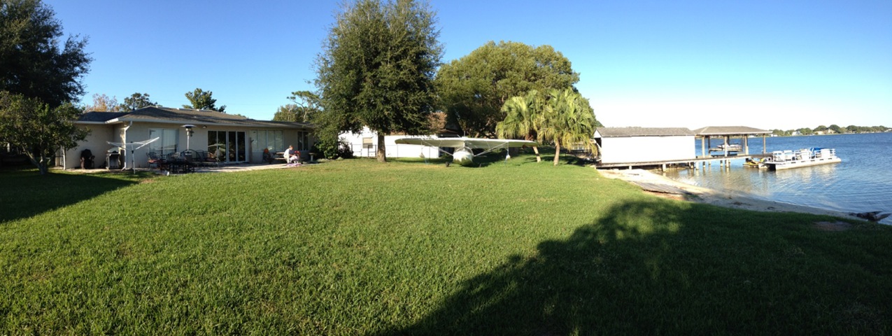Интересующая нас лодка стояла на заднем дворе частного дома одного из работников кооператива. Поразила простота использования ВС - он завел ее как мопед, и с личного пляжа съехал в воду… Далее после короткого пробега взлетел. Скорости у нее конечно не большие, 80 миль/час, но в качестве дальнобойного ВС его никто и не рассматривает, это исключительно досуговый аппарат, которому больше скорости и не надо. За счет легкости его пробеги и разбеги минимальны. Зимой можно поставить на лыжи и летать практически из любого сугроба ☺)))
