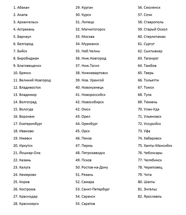 Перечень городов, в которых с 1 января 2013 года Вы сможете заправиться
