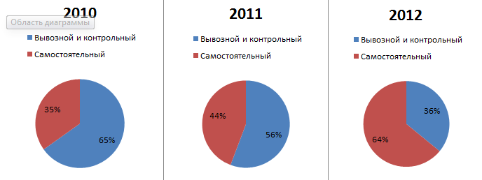 Ну и единственный правильный тренд - распределение вывозного и самостоятельного налета по годам в %