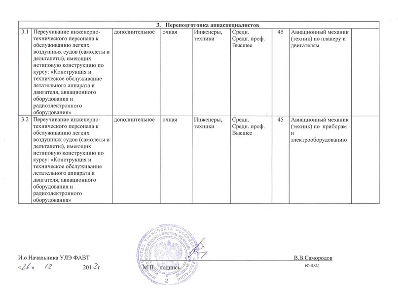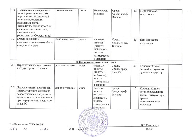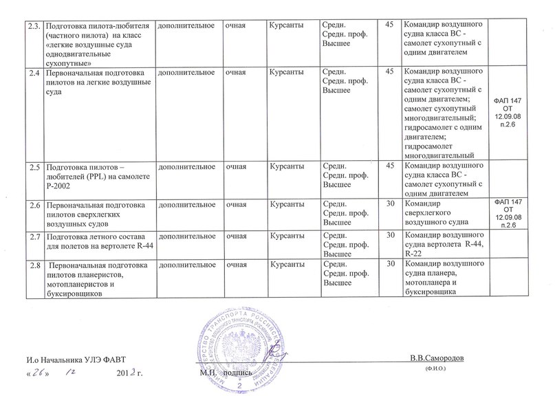 - переподготовка пилотов легких ВС ( самолет сухопутный однодвигательный).