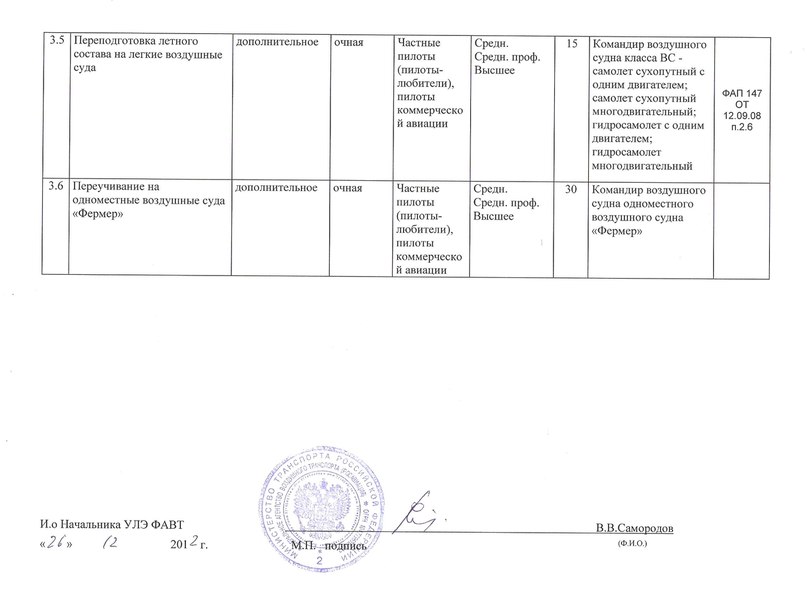 - переподготовка пилотов легких ВС ( самолет сухопутный однодвигательный).