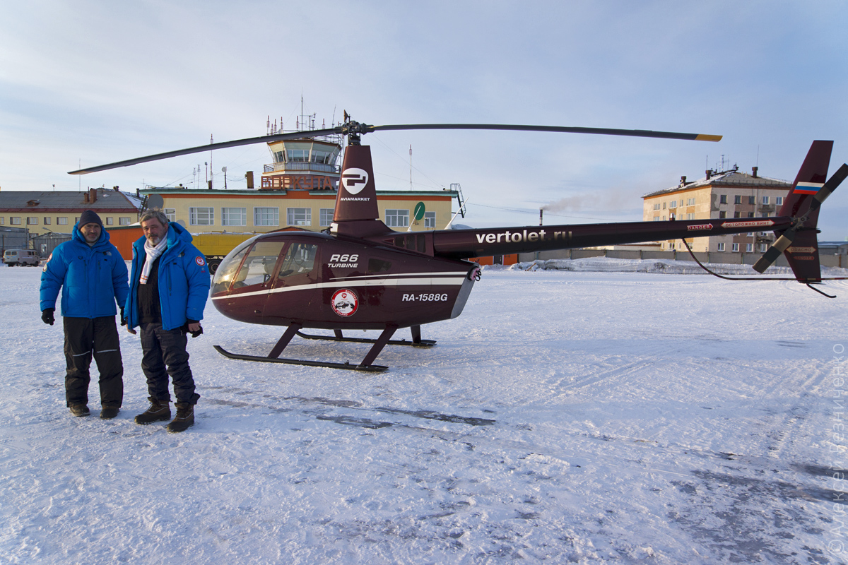 Вчера в Воркуту после завершения экспедиции «По следам двух капитанов-2013» вновь прибыли известные на весь мир пилоты-любители Михаил Фарих и Дмитрий Ракитский, члены клуба «Авиамаркет», путешествующие на легком вертолете марки Robinson R66.