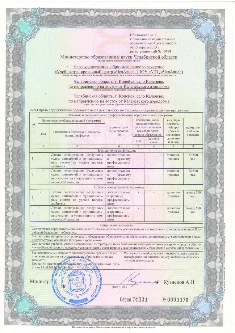 Негосударственное образовательное учреждение "Учебно-тренировочный центр "ЧелАвиа" (НОУ "УТЦ "ЧелАвиа") признан прошедшим лицензинонную экспертизу на право осуществления образовательной деятельности по реализации программ дополнительного профессионального образования!