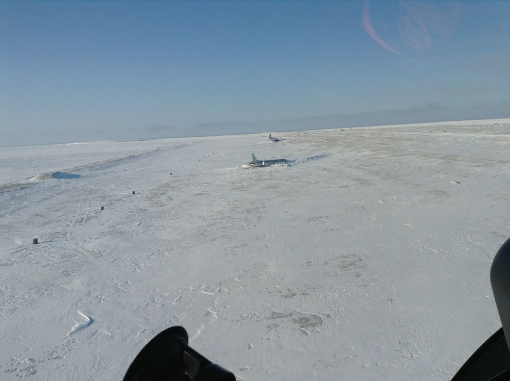 Итак, после взлета с Диксона мы взяли курс на Север, на аэродром острова Средний архипелага Северная Земля (UODS). По пути произвели короткую посадку на острове Тройной (метеостанция Известий ЦИК) для передачи зимовщикам-метеорологам посылок с Большой Земли. Без приключений к концу дня достигли острова Средний, где и заночевали на пограничной заставе.