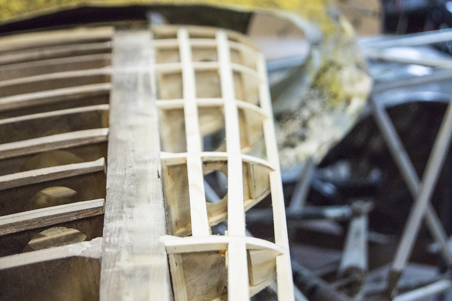 Александр Швыдкин внимательно изучает состояние нервюр крыла