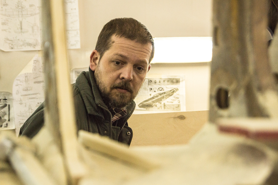 Александр Швыдкин внимательно изучает состояние нервюр крыла